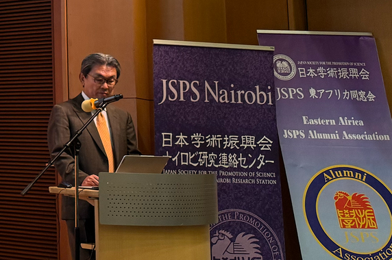 学振トピックス JSPS Topics ナイロビ研究連絡センター創立60周年記念式典が開催されました 公開日:2026年3月18日 令和8(2026)年2月13日(金)、在ケニア日本国大使館において、同大使館およびJSPS東アフリカ同窓会との共催により、日本学術振興会(JSPS)ナイロビ研究連絡センター創立60周年を祝した記念式典がハイブリッド形式で開催されました。この式典には、日ケニア両国の研究助成機関・大学・研究機関の関係者、在ケニア日本国大使館、JSPS東アフリカ同窓会、ならびにJSPS東京本部とナイロビ研究連絡センター関係者約70名が参加しました。 記念式典参加者 JSPSナイロビ研究連絡センターは1965年に日本人調査者のアフリカ現地調査の拠点として創立され、60周年を迎えました。日本学術振興会の10ヶ所の海外研究センターの中で最も長い歴史を持ち、半世紀以上にわたりサブサハラアフリカ地域での日本学術振興会唯一の拠点として活動してきました。 式典では、松浦博司大使、日本学術振興会水本哲弥上席参与、ケニア国務省科学研究イノベーション局(the State Department for Science, Research and Innovation)Principal secretaryのAbdulrazak Shaukat教授、JSPS東アフリカ同窓会役員のJohn Collins Onyango教授がそれぞれ開会にあたり挨拶を行いました。水本上席参与は挨拶の中で、60周年を迎えるにあたり関係者のご支援及び式典にご臨席いただいた方への謝辞を述べ、松浦大使、Abdulrazak教授、Onyango教授からは意義深い祝辞がありました。 祝辞を述べる松浦博司在ケニア日本国大使館大使 挨拶を述べる水本哲弥日本学術振興会上席参与 祝辞を述べるケニア国務省科学研究イノベーション局Abdulrazak Shaukat教授 続いて、JSPSナイロビ研究連絡センターの歴代センター長経験者の1人である、総合地球環境学研究所の山極壽一所長(京都大学名誉教授)から、アフリカ各地での野生ゴリラ研究のご経験を交えながら、日アフリカ間の研究交流に関する基調講演がありました。また、一瀬休生長崎大学名誉教授、藤原勉島根大学名誉教授から、それぞれ研究講演がありました。 基調講演を行う山極壽一総合地球環境学研究所所長 講演を行う一瀬休生長崎大学名誉教授 さらに、日本学術振興会原口希国際事業部参事から、ケニア国務省科学研究イノベーション局と本会が2025年11月に新たに締結したMOCを紹介するとともに、近々ケニア国務省科学研究イノベーション局との二国間交流事業の募集を開始する予定であることを紹介しました。加えて、JSPSナイロビ研究連絡センターの歴代のセンター長経験者や同センターにゆかりのある日ケニア両国の研究者の方々より、JSPSナイロビ研究連絡センターの軌跡を振り返り今後の更なる発展を期する祝辞のメッセージがあるなど、式典は多岐に渡るプログラムにより進行されました。最後に山根裕美ナイロビ研究連絡センター長より、今回の式典を契機に、今後の日ケニア、ひいては日アフリカ間の学術交流のますますの発展に向けた抱負が述べられ、盛会のうちに閉会しました。 二国間の共同研究・セミナーを紹介する原口希日本学術振興会国際事業部参事 祝辞を述べるJSPSナイロビ研究連絡センターにゆかりのある研究者-1 祝辞を述べるJSPSナイロビ研究連絡センターにゆかりのある研究者-2 会場の様子 最新情報を発信していきます。ぜひフォローをお願いします。