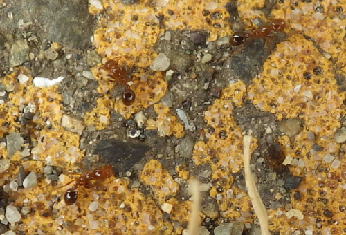 <大阪府・大阪市同時発表> 令和7年10月9日(木)に大阪港で確認されたアリについて、専門家による同定の結果、要緊急対処特定外来生物ヒアリ( Solenopsis invicta)であることが確認され、その後、調査及び防除を行ってきたところです。 当初確認されたのは働きアリのみでしたが、同年10月21日(火)に実施した防除作業において、サナギ1個体が新たに確認されましたのでお知らせします。 引き続き、発見場所において目視やトラップによる調査及び防除を大阪府・大阪市等と協力して実施し、定着防止の取組を進めます。 経緯 10/9(木) 環境省が実施する全国港湾調査の大阪港での調査において、調査事業者がコンテナヤード上で、ヒアリと疑わしいアリの働きアリ約300個体が舗装の継ぎ目から出入りしていることを確認。確認場所周辺に殺虫餌(ベイト剤)を設置。環境省が専門家に回収したアリの同定を依頼。 10/10(金) 環境省が追加の現地確認を実施。10/9の確認場所周辺でヒアリと疑わしいアリの働きアリ約400個体を確認。確認場所周辺に殺虫餌(ベイト剤)を設置。 10/14(火) 環境省から依頼を受けた専門家が、当該アリについてヒアリであることを確認。 10/21(火) 環境省業務の請負事業者が確認場所周辺の調査及び防除を実施。ヒアリの働きアリ400個体以上と、働きアリに運ばれているサナギ1個体を確認。 今回確認されたヒアリについて 10月21日(火)に確認されたアリは、働きアリ400個体以上とサナギ1個体です。 対応状況 引き続き、発見場所において目視やトラップによる調査及び防除を、大阪府・大阪市等と協力して実施し、定着防止の取組を進めます。 なお、「ヒアリ類(要緊急対処特定外来生物)に係る対処指針を定める件(令和5年国土交通省・環境省告示第1号)」を踏まえ、近畿地方環境事務所から関係機関に対して、改めて以下を依頼しています。 今回ヒアリ類の確認があったことから、当該コンテナヤード及びその周辺の点検等を適宜実施すること。 ヒアリやアカカミアリを含むヒアリ類と疑わしいアリをコンテナや積荷で確認した場合は、密閉等により逸出を防ぎ、速やかに環境省に連絡すること。 ヒアリ類の疑いがある場合には、外来生物法に基づき、環境省からコンテナや積荷等の移動制限又は移動禁止の命令が出される場合があること及びヒアリ類と同定後には当該コンテナや積荷等の消毒又は廃棄の命令が出される場合があることに留意すること。 今後、環境省等が実施する調査に協力すること。 (参考)要緊急対処特定外来生物とは 外来生物法第2条第3項に基づき、「特定外来生物のうち、まん延した場合には著しく重大な生態系等に係る被害が生じ、国民生活の安定に著しい支障を及ぼすおそれがあるため、当該特定外来生物又はその疑いのある生物を発見した場合において検査、防除その他当該特定外来生物の拡散を防止するための措置を緊急に行う必要があるもの」として政令で指定するもの。 今回確認されたヒアリ(働きアリ) 今回ヒアリが発見された場所 疑わしいアリの発見時の対応について 疑わしいアリを発見された方は、以下に留意するようお願いします。 <事業者の皆様へのお願い> コンテナ等の開封時等にヒアリやアカカミアリを含むヒアリ類と疑わしいアリを発見した場合、まずは刺激を避けつつ、コンテナ等のどの箇所にどの程度の生きたアリがいるか等の状況を確認してください。 アリが少数しかおらず、密閉されたコンテナや積荷内等で逃げ出すおそれのない場合は、市販のスプレー式殺虫剤等でその場で駆除してください。その上で、環境省地方環境事務所等に速やかに連絡し、取扱いについて相談してください。 多数の生きたアリの集団がいる(と予想される)場合は、コンテナ等の扉を閉めて、逃げ出さないよう静置してください。その上で、環境省地方環境事務所等に速やかに連絡し、取扱いについて相談してください。コンテナ等の外で確認された場合についても同様に連絡をお願いします。可能であれば、強粘着の布ガムテープ等でコンテナの目張りをするなど、アリが逃げ出さないように対応してください。 詳細については、「ヒアリの防除に関する基本的考え方 Ver.4.1」のP21~28を参照してください。 https://www.env.go.jp/nature/intro/2outline/attention/file/hiariboujo.pdf また、対象事業者がとるべき措置について定めた「ヒアリ類に係る対処指針」に関する情報は以下ウェブサイトの「■ヒアリ類(要緊急対処特定外来生物)に係る対処指針について」を参照してください。 https://www.env.go.jp/nature/intro/2outline/attention/04_business/index.html <一般の皆様へのお願い> ヒアリの詳しい特徴や注意事項、見つけたときや刺されてしまった場合の対処方法などについては下記を参照してください。 「要緊急対処特定外来生物ヒアリに関する情報」 https://www.env.go.jp/nature/intro/2outline/attention/hiari.html ヒアリやアカカミアリを含むヒアリ類と疑わしいアリを発見した場合や、ヒアリの特徴等一般的な問合せ、健康被害の問合