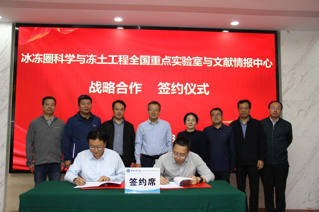 为进一步深化科学研究与文献情报服务融合,推动资源共享与优势互补,9月23日,冰冻圈科学与冻土工程全国重点实验室(以下简称实验室)与文献情报中心签订战略合作协议。中国科学院西北生态环境资源研究院党委书记、副院长张长春、文献情报中心党总支书记刘蔚,副主任(主持工作)白光组,科研管理处副处长廖杰,以及双方相关负责人和科研人员参加签约仪式。签约仪式由西北研究院副院长、实验室主任张明义主持。