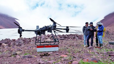 科考队使用无人机搭载探地雷达监测冰川。王雯静摄/光明图片