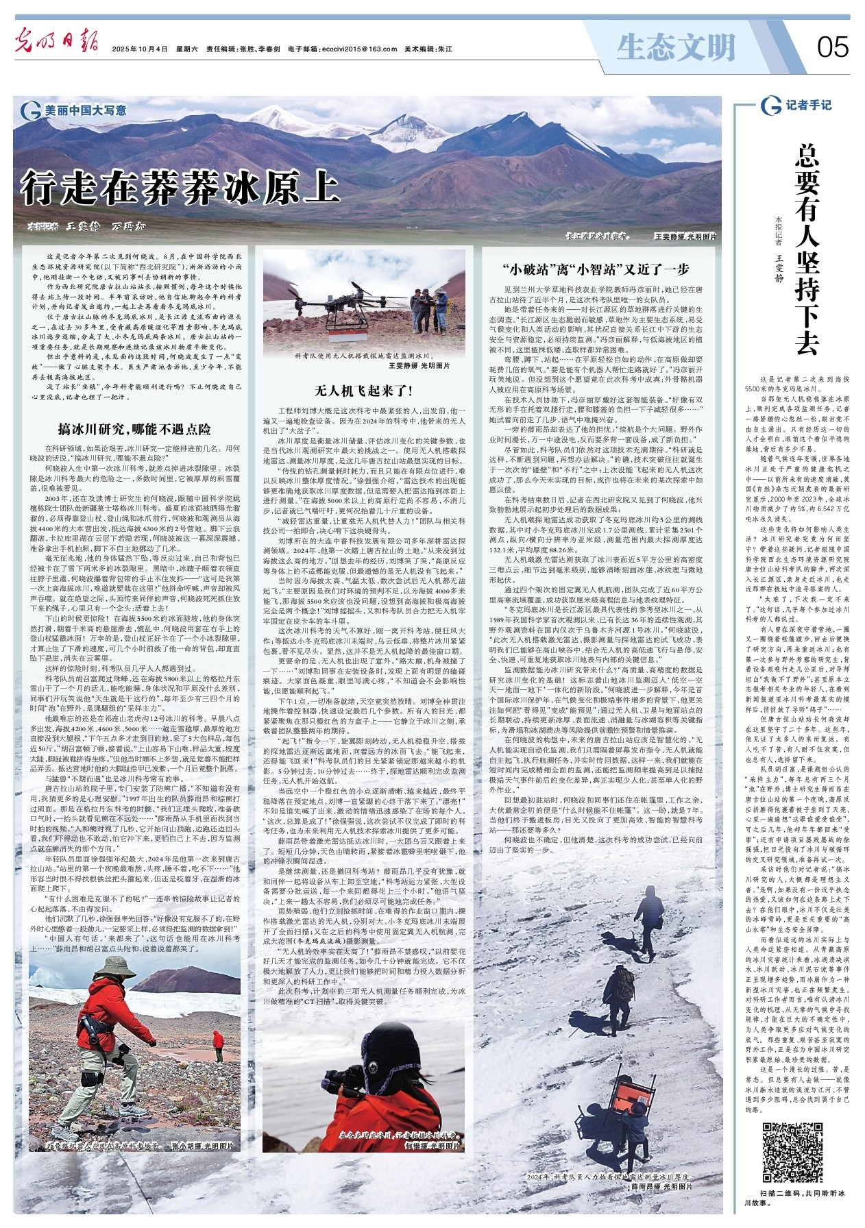 尽管如此,科考队员们依然对这项技术充满期待。“科研就是这样,不断遇到问题,再想办法解决。”的确,技术突破往往就诞生于一次次的“碰壁”和“不行”之中:上次没能飞起来的无人机这次成功了,那么今天未实现的目标,或许也将在未来的某次探索中如愿以偿。