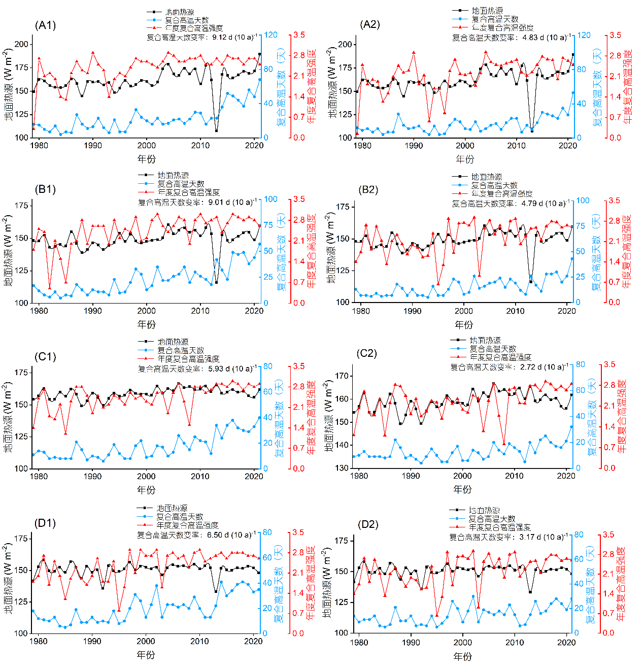 城市群作为新型城镇化的主体形态,已成为我国现代化建设的重要载体。全球变暖与城市化的相互交织,进一步加剧了城市群地区所面临的气候风险。作为大气能量直接来源的地面热源,其变化深受城市化进程中陆面特征改变和人类活动的显著影响,尤其在城市(群)这类复合高温事件频发的区域,这些变化对城市宜居性和社会运行产生深远影响。复合高温事件因具有持续性强、能量异常显著等特征,相较于单一高温事件,对经济发展、社会运行与公共健康构成更大威胁。然而,目前对于地面热源与复合高温事件之间的关联机制,仍缺乏系统性认识。