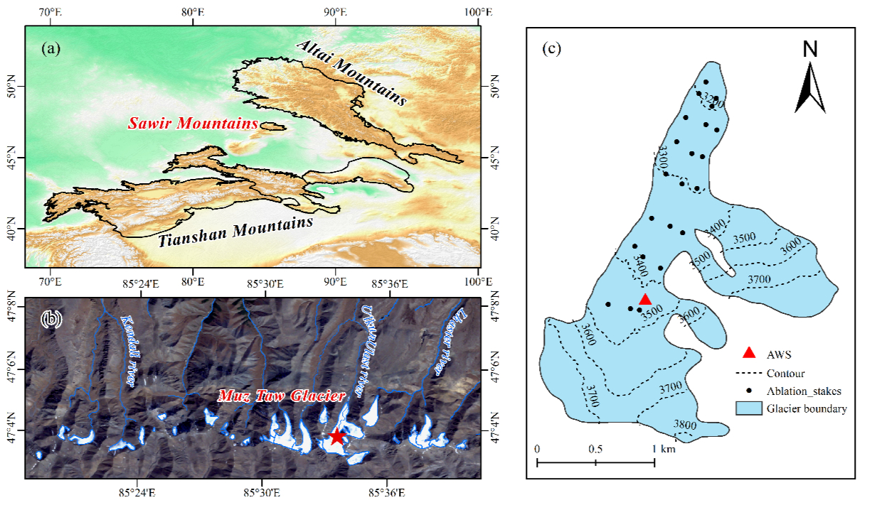在全球气候持续变暖背景下,作为中亚干旱区重要“固体水库”的山地冰川因消融显著增强而快速退缩。位于中国-哈萨克斯坦边境的萨吾尔山冰川,因其独特的“高纬度、低海拔”和受西风带-北冰洋气流共同影响的特点,备受冰川变化研究者的重视。萨吾尔山木斯岛冰川作为该区域唯一系统监测的参照冰川,对其进行现场观测为深入研究冰川变化过程和机理提供了可靠的数据支撑。中国科学院西北生态环境资源研究院阿尔泰山冰冻圈科学与可持续发展综合观测研究站(简称阿尔泰山站)研究团队高精度重建了萨吾尔山木斯岛冰川2000年至2023年物质平衡变化过程,为深入理解冰川变化对气候变化响应的区域特征和预估未来冰川变化及其影响提供了重要数据支撑和研究思路。研究团队选用全分量分布式能量平衡模型(COSIPY),以2015年来逐年物质平衡实地观测数据和2000年来每5年间隔大地测量法获取的物质平衡变化作为验证,模拟重建了2000年至2023年物质平衡逐年序列,通过误差评估和不确定性分析,明确了研究结果的可靠性。研究发现,2000年至2023年间,木斯岛冰川年均物质平衡为-0.7731米水当量,累计物质损失达-18.55米水当量。值得注意的是,虽然2000年至2017年间消融持续加剧,但2018年以后出现连续几年物质损失显著低值,2022和2023年又为高值。能量收支分析显示,净辐射是主要消融驱动力。在消融期和全年分别贡献71%和63%的能量。感热通量次之,贡献为11%至18%。与处于西风带且较为邻近天山等地区的冰川相比,木斯岛冰川物质损失最为显著,但其净辐射值相对较低,夏季温度被证实是影响冰川物质平衡变化的最关键气候因子。该研究不仅揭示了萨吾尔山冰川的消融机制,更建立了可靠的预测模型,为评估区域水资源变化提供了科学依据。随着气候变化加剧,这类长期监测研究对水资源管理和生态保护具有重要指导价值。据悉,研究团队将进一步加强对萨吾尔山、阿尔泰山冰川的观测和模拟研究,以更精准评估气候变化对冰川动态的影响,为区域可持续发展提供科技支撑。该研究成果以Mass balance reconstruction of a reference glacier in central Asia during 2000–2023: Integrating simulation and in-situ measurements为题发表于气候变化领域权威期刊Advances in Climate Change Research。西北研究院王璞玉研究员为论文第一作者和通讯作者。该研究得到国家自然科学基金、中国科学院青促会优秀会员项目、冰冻圈科学与冻土工程全国重点实验室自主部署项目等联合资助。论文链接:https://doi.org/10.1016/j.accre.2025.06.006萨吾尔山木斯岛冰川定位观测2000至2023年木斯岛冰川年物质平衡和累积物质平衡与西风主导区其他四条监测冰川能量通量和物质平衡对比(S 和 L 分别代表净短波辐射和净长波辐射;H、LE 和 G 分别表示显热通量、潜热通量和地表热通量)