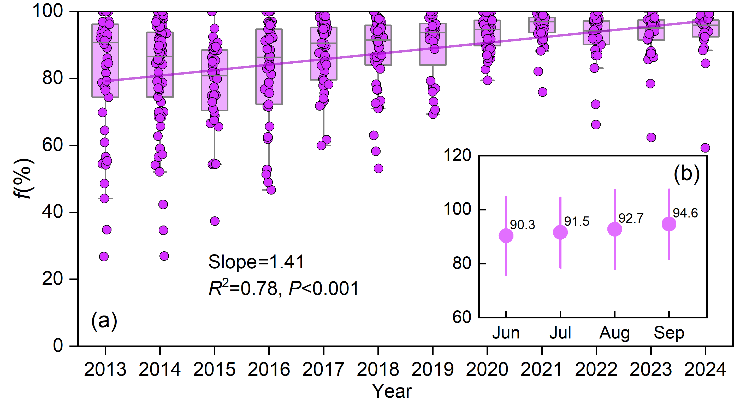 青藏高原作为“亚洲水塔”,其降水稳定同位素是解析区域及全球水循环的关键指标,广泛应用于古气候重建与水循环研究。然而,该区域气候干旱、空气湿度低,云下蒸发会显著改变降水稳定同位素组成,进而影响同位素示踪的准确性。目前对青藏高原腹地,尤其在气候过渡带唐古拉山地区,云下蒸发的定量研究尚存在空白。作为“亚洲水塔”核心区,该区域正经历显著“变暖变湿”,但高海拔恶劣环境导致长期观测数据稀缺,既制约高海拔水循环认知,也影响冰芯等古气候代用指标的重建精度。中国科学院西北生态环境资源研究院与成都山地灾害与环境研究所联合团队依托唐古拉山冰冻圈与环境野外科学观测研究站,在唐古拉山中段布设多海拔降水同位素观测站点,系统采集降水样品与配套气象数据。研究团队依托12年连续观测数据,采用瑞利蒸发模型模拟云下蒸发过程,结合多海拔站点对比分析与自主构建的同位素分馏模型,量化了云下蒸发对降水稳定同位素的影响程度,并揭示关键驱动因子及作用机制。研究表明,云下蒸发导致降水稳定同位素组成显著偏正、氘盈余显著降低,且该影响存在明显季节与天气差异,干旱季节及低湿度条件下尤为突出,最高可使降水δ¹⁸O偏正20%以上,远超此前预期。进一步研究发现,降水强度是调控云下蒸发效应的关键因子,小雨事件效应显著强于中大雨,且温度、相对湿度与降水强度共同构成该过程的核心驱动机制。该成果填补了青藏高原腹地云下蒸发长期观测研究的空白,深化了全球变暖背景下高海拔水文循环响应机制的认知。通过明晰云下蒸发对降水落地量的影响,为“亚洲水塔”水资源评估与管理提供科学支撑,为评估未来气候变化对青藏高原水循环的影响提供了新视角。研究团队表示,将进一步拓展观测网络,开展更长时间尺度研究,持续揭示青藏高原水循环对全球变化的响应机制。相关成果以Effects of below-cloud evaporation on stable isotopes in precipitation revealed by 12-year observations in the Tanggula Mountains,Central Tibetan Plateau为题,发表于地学期刊Journal of Hydrology。西北研究院何晓波副研究员为第一作者,成都山地所汪少勇博士后为通讯作者。该研究获国家自然科学基金、西藏自治区科技计划重点研发计划项目、冰冻圈科学与冻土工程全国重点实验室自主部署课题资助。论文链接:https://authors.elsevier.com/c/1lsjZ52cui-PJhttps://www.sciencedirect.com/science/article/pii/S00221694250164032013至2024年研究区剩余雨滴组分的时间变化趋势(a) 年际变化(b) 月度变化2013至2024年降水从云底到地面的δ¹⁸O和d-excess变化量(Δδ¹⁸O和Δd)的年际趋势Δδ¹⁸O和Δd与各气象因子的关系