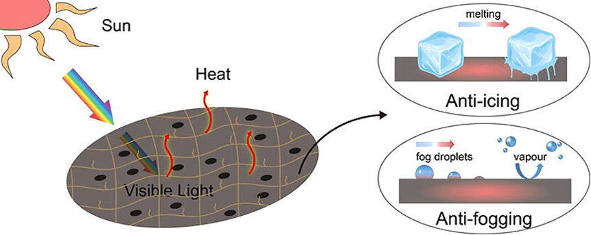 1、光学材料表面结冰、起雾会给日常生活带来各种问题。最近,一些光热涂层被报道通过提高表面温度来防止水滴的冷凝或冻结。然而,由于它们的不透明性和较差的机械耐磨性能,在实际条件下应用它们是一个巨大的挑战。