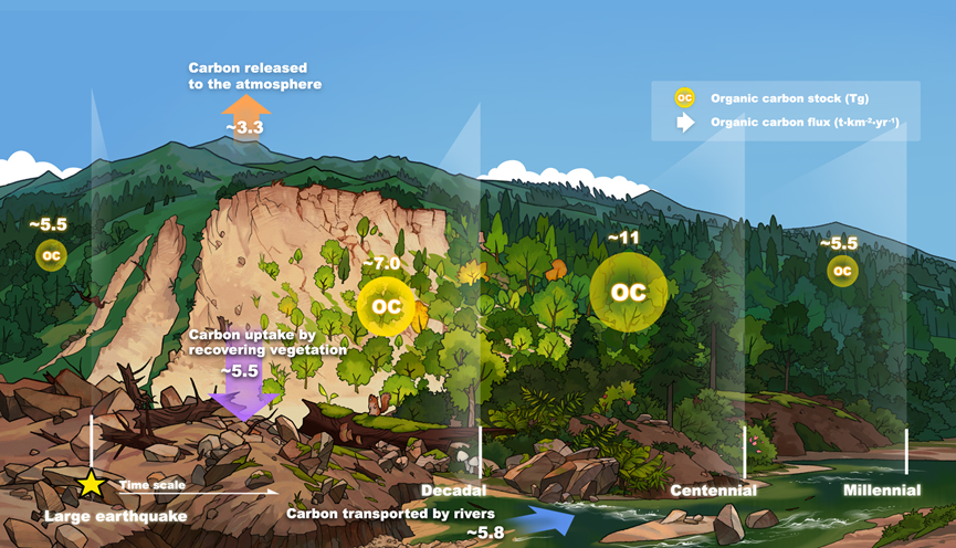 在全球碳循环研究中,陆地碳库通常被认为主要受气候变化、植被演替及人类活动调控,而构造活动,尤其是强烈地震事件,长期以来多被视为一种短暂而剧烈的生态扰动,往往被认为会加速有机碳的释放与输出,难以与碳汇过程建立联系。